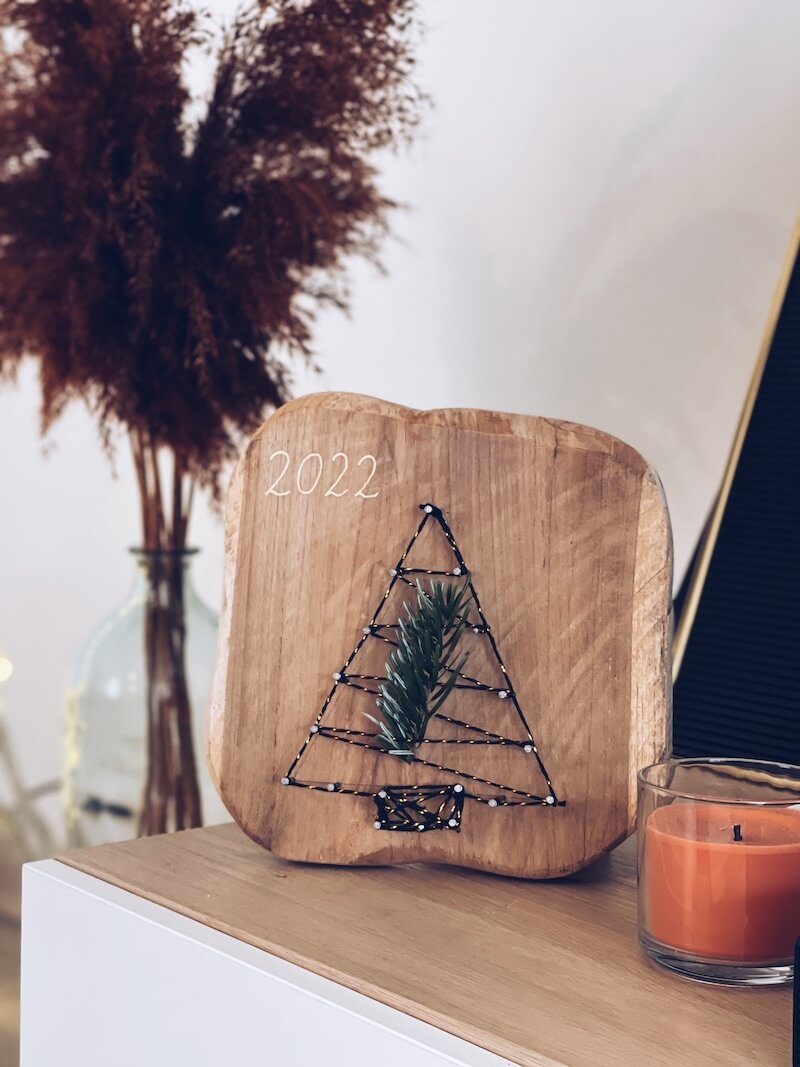 Je kan je wensen ook op een houten schijf schrijven. Op de voorkant kan je mooie spijkerkunst maken! Als dit geen leuk alternatief voor een nieuwjaarsbrief is…