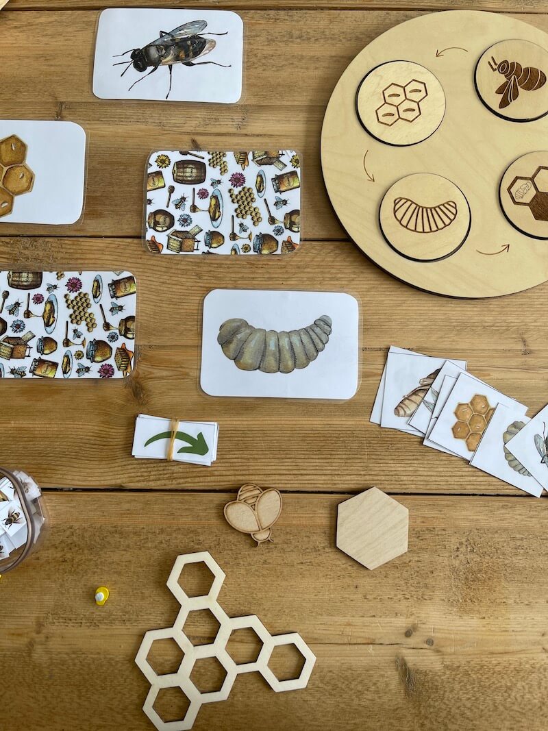 Ik maakte EDUCATIEVE PRINTABLES over de bijen. Die kan je vinden in mijn shop. HIERZOOOO !!!! Je kan ze printen, lamineren en dan heb je leuke werkmiddelen om in combinatie met sensory play te doen, in de klas of thuis.