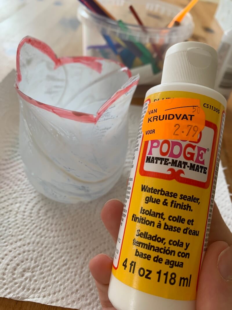 - Zet een eerste laagje modge podge of een andere primer/grondverf op de fles en laat drogen