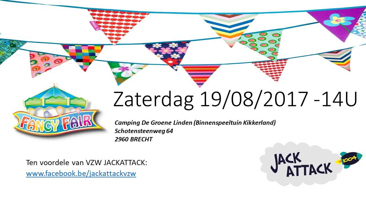Op 19 augustus organiseert camping De Groene Linde een Fancy Fair ten voordele van Jack. Allen daarheen dus! Wij zullen er zijn. Unicorns & Fairytales steunt ook graag Jack Attack en daarom schenk ik samen met enkele speelgoedmerken (Little tikes, VTech, Play Do’h, Zebra Books …) speelgoed aan de Fancy Fair ten voordele van Jack Attack. Het lijkt me ook leuk om lezers hier te ontmoeten dus als je tijd hebt om af te zakken naar Brecht, laat het me dan zeker weten, ik kom graag een praatje slaan.