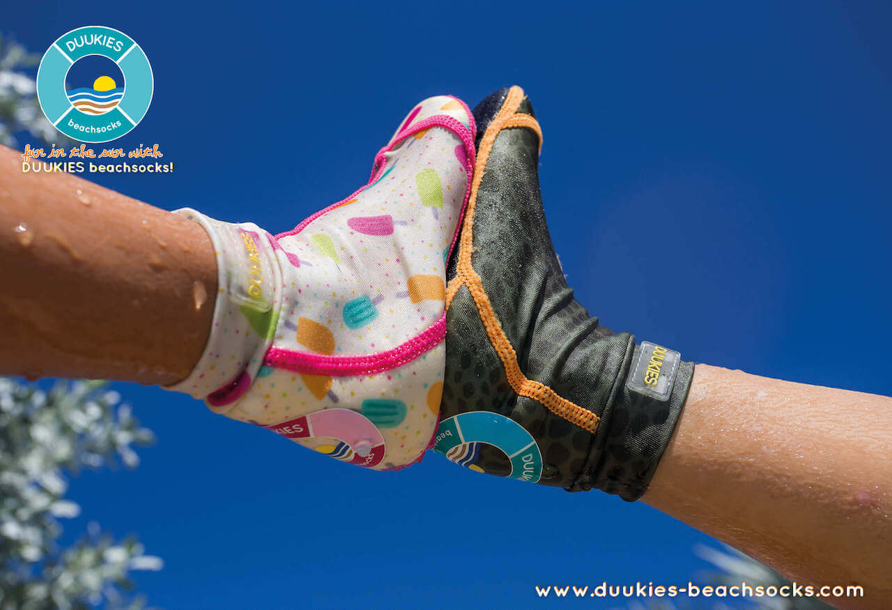 Ga je met je kind naar zee, op vakantie of naar het zwembad? Dan kan je best de voetjes beschermen tegen schelpjes, heet zand of uitglijden. Uiteraard heb je plastieken waterschoentjes maar eigenlijk is er nog iets veel comfortabeler: Duukies Beachsocks. Yes!
