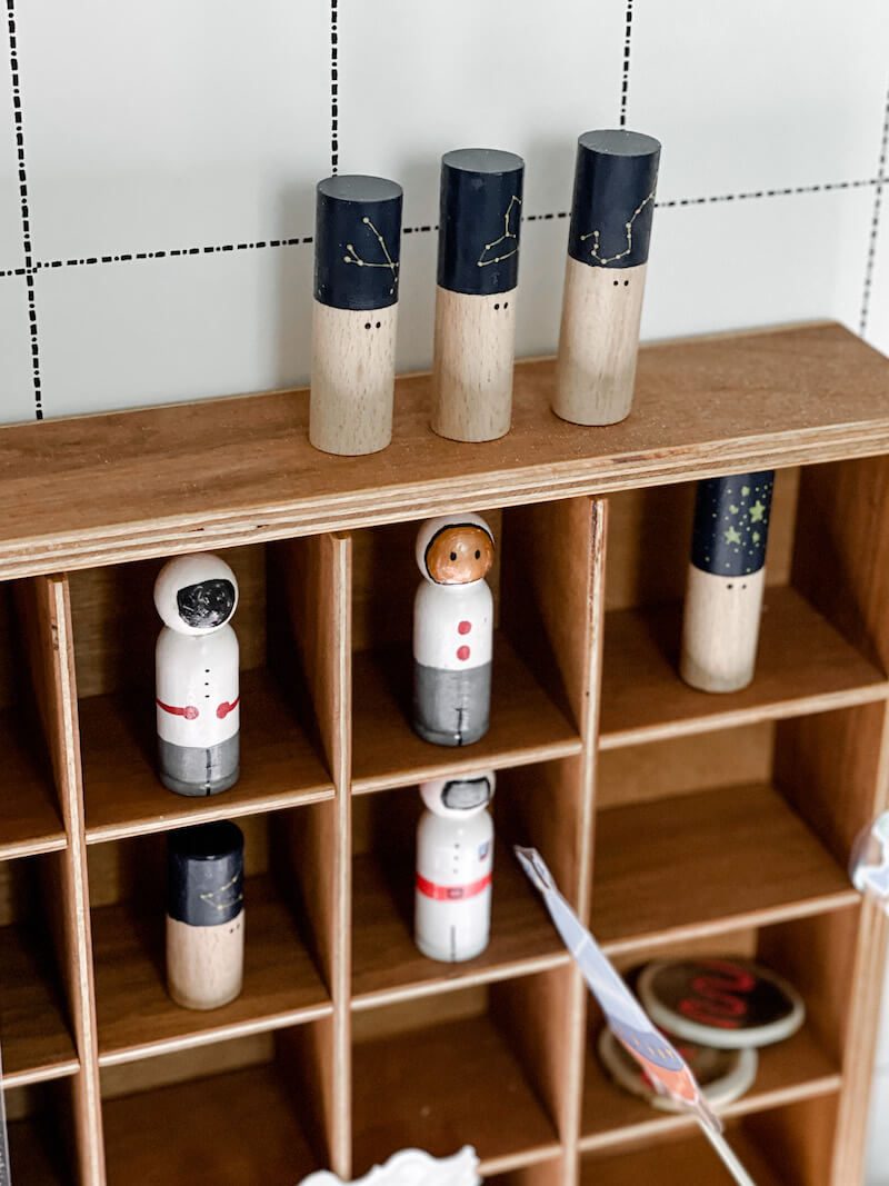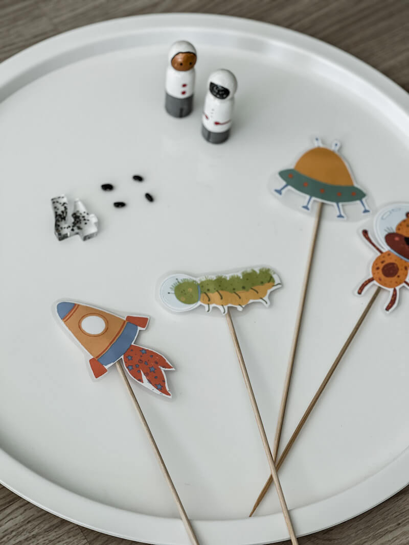 Gebruik astronauten Playmobil mannetjes of pegdolls. Kinderen gaan er echt superleuk mee aan de slag gaan.
