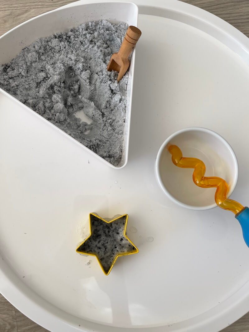 Je kan het sensorische spel nog leuker maken door een papje te maken van baking soda en wat water, in een mal te doen en in de vriezer te zetten. Zo maak je fizzy planeten, sterren of eender wat! Als je die dan besprenkelt met azijn dan gaan ze bruisen. Kinderen blijven dit leuk vinden! Je kan natuurlijk ook bath bombs maken die zorgen dat je bad gaat bruisen! Leuk!