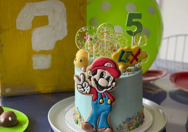 Ik liet een Super Mario Bros taart maken bij MALINKAHOMEBAKERY. Dat is van een mama van een kindje dat in mijn klas zat. Zij maakt dé mooiste taarten en koekjes voor verjaardagen, speciale gelegenheden en huwelijken. Een ware aanrader. Vind je hem niet geweldig mooi???? Allemaal met de hand gemaakt!!!! De lolly’s zijn ook met een suikervervanger gemaakt, met Isomalt. Ideaal!