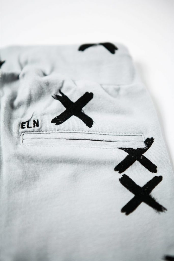De ‘Monochrome Heaven’ collectie bestaat uit 2 shirtjes (een effen witte en een witte met een stoere zwarte cross print), 2 baggy pants (een effen zwarte en een grijsblauwe kleur met een zwarte cross print), en 2 bibs en 2 onesies met coole teksten. Teksten die perfect passen bij een eigenwijs en stoer kleintje, net als mijn zoontje Senna. Senna heeft mij enorm geïnspireerd door zijn gedrag en uitspraken als inmiddels 2-jarige. Zo ontstond al heel snel de tekst ‘I’m my own chief’ of ‘I can still wrap daddy around my finger’.