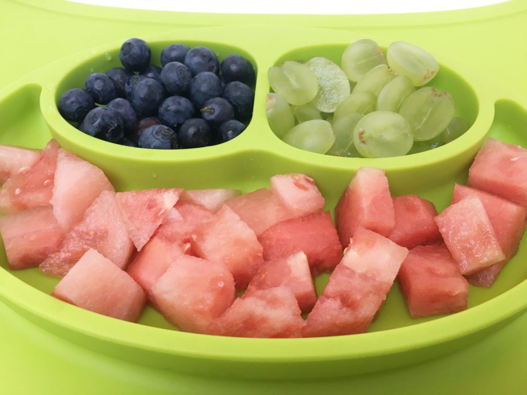I found this Happy Mat at a Belgian Eco Webshop Blabloom. The Happy Mat is an all-in-one placemat + plate that captures kids’ messes. Another bonus? It suctions directly to the table, making it nearly impossible for tiny hands to tip over. The Happy Mat is designed for infants / toddlers 9+ months. It has portion sizes (i.e., the eyes and smile). They are catered to toddlers at 4oz, 4oz and 10oz. The three compartments remind parents to serve a fruit or veggie, protein and carbohydrate. They have other positive aspects: