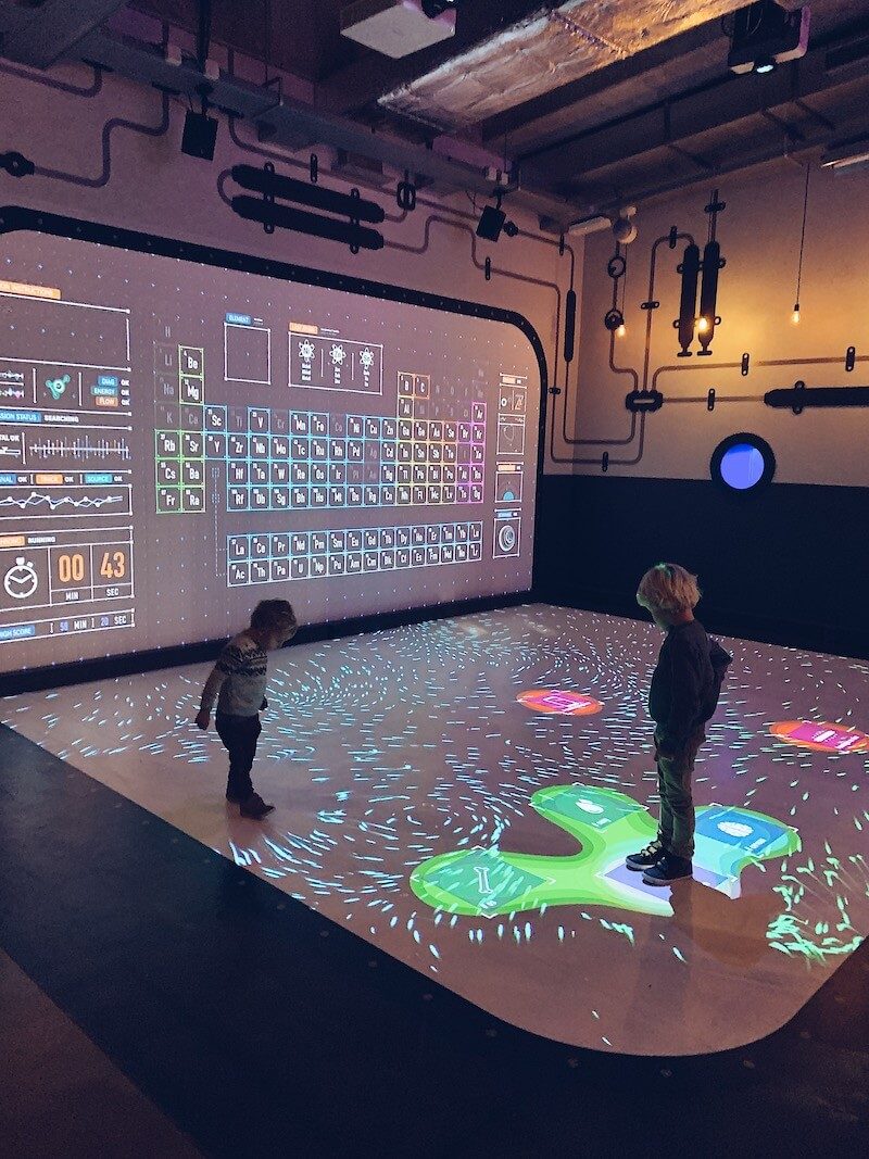 Vaak ben ik op zoek naar een interactief museum voor kinderen; waar ze veel zelf kunnen ontdekken en doen, maar dit wetenschappelijk pretpark is gewoon een droom voor kinderen. Hier kunnen ze rennen, ontdekken, proefjes doen en aan workshops meedoen. Je komt al spectaculair binnen, met een grote roltrap naar de inkom met wat randanimatie. Nadien kan je doorheen verschillende ruimtes met verschillende thema’s gaan. Steeds zijn er verschillende proefjes, filmpjes of opdrachten die de kinderen kunnen bekijken of doen.