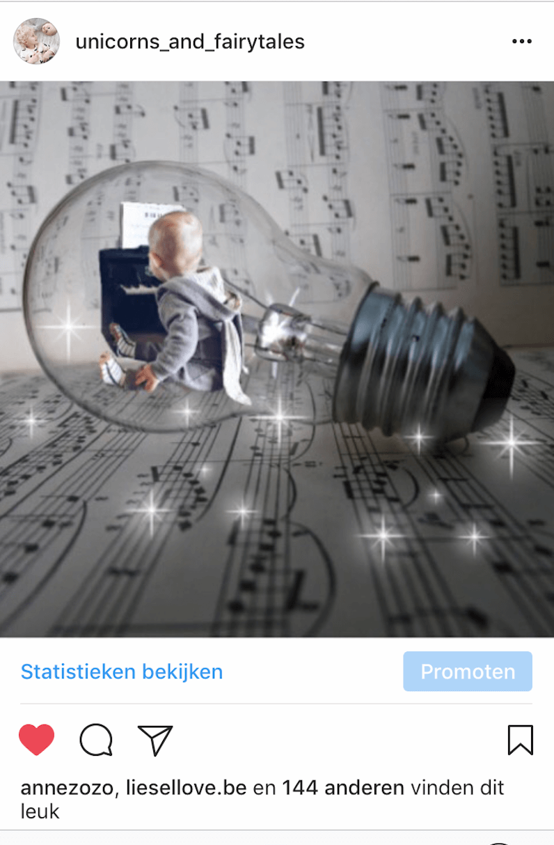 Maar ik deed alles met enkele toffe apps en zo kan het dus ook. Je hebt er geen kennis van Photoshop van nodig. Ik sloeg alle tips op die ik opdeed van te kijken bij anderen en van tips die ik hier en daar las. Ik probeerde en testte uit en zo kwam ik op de hashtag #magicofunicornsandfairytales, die jij ook gemakkelijk kan volgen op Instagram.