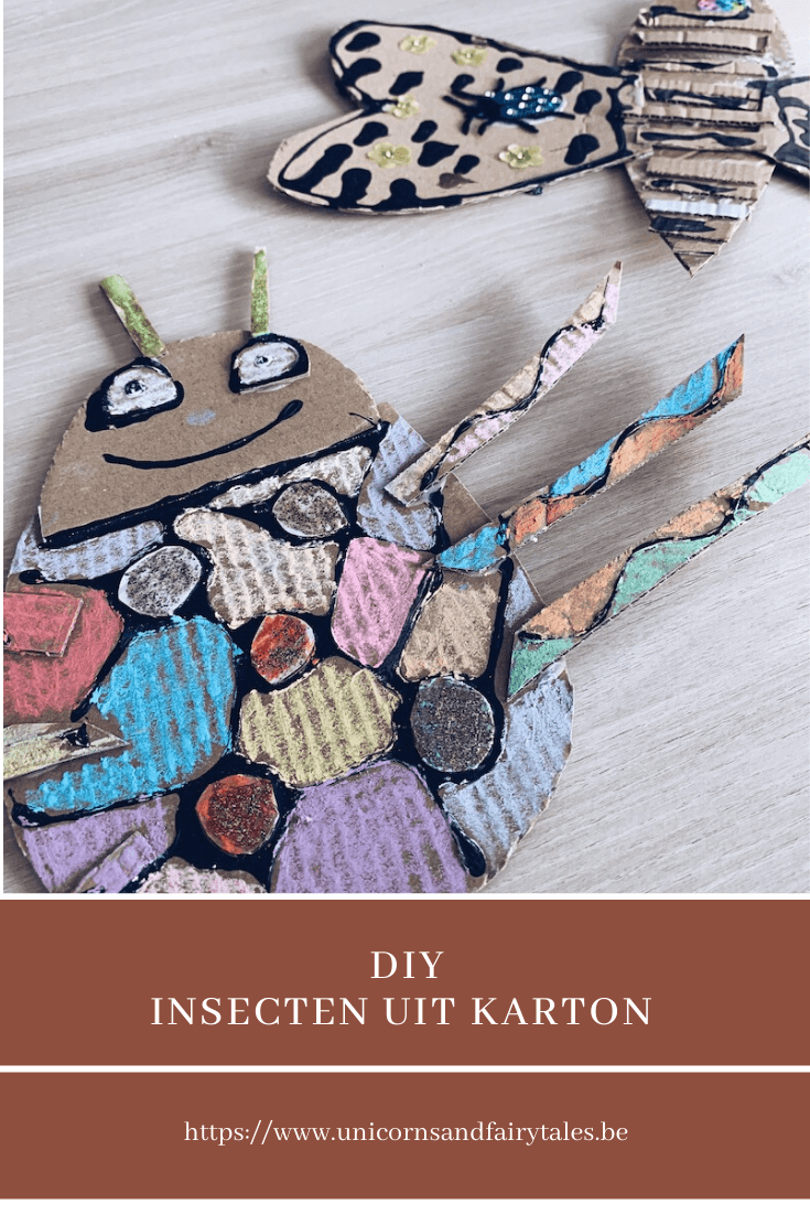 Wij zijn thuis bezig met het thema insecten en doen daar allerlei activiteiten en creatieve dingen rond. De kinderen vinden kriebelbeestjes heerlijk. Omdat wij toch altijd karton en papier hebben, was het voor ons niet moeilijk om deze kartonnen insecten te maken. Knutselen met recyclagemateriaal. Super leuk!