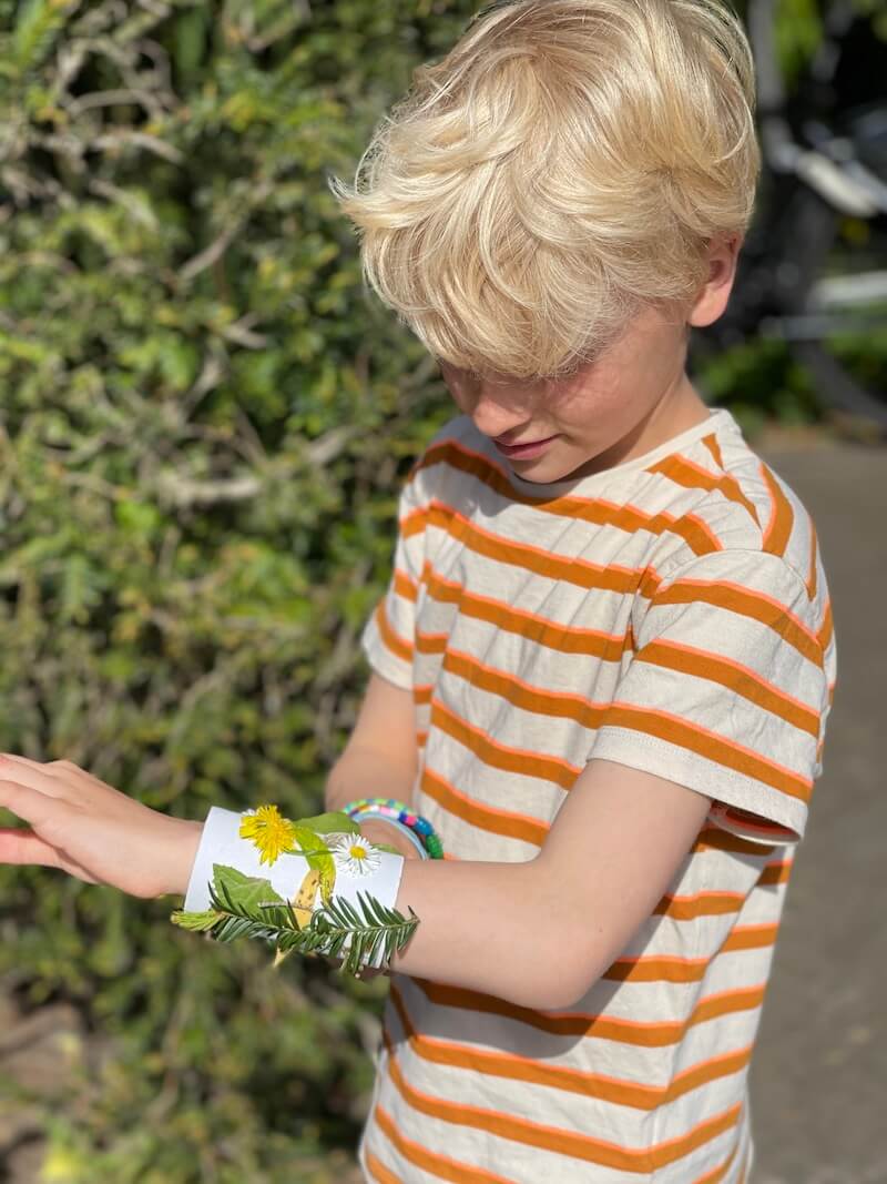 Wil je een natuurwandeling een beetje creatief maken? Heb je bloemen die bijna verwelkt zijn? Wat denk je van een natuurkroon en masker? Of een toffe armband. Verzamel mooie natuurlijke materialen en ga als een echte natuurprins of prinses verder.