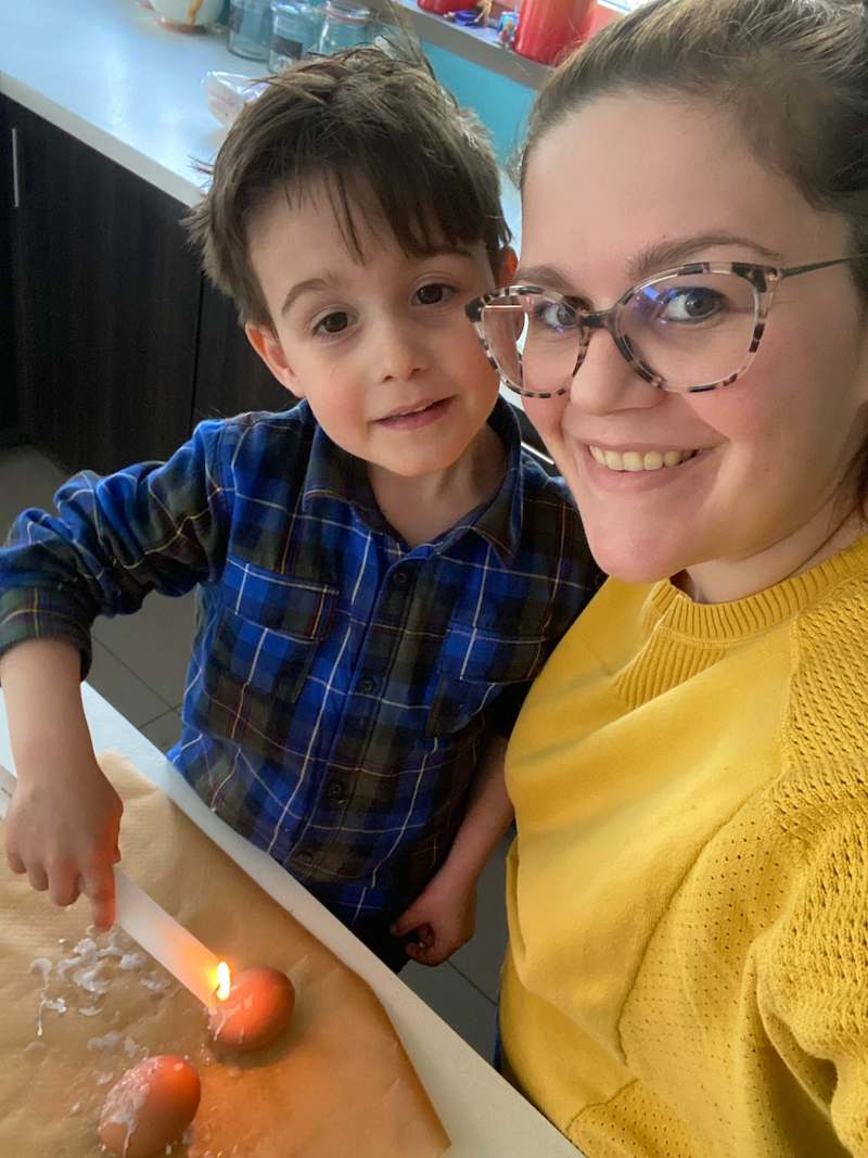 Elk jaar vanaf witte donderdag, de dag dat de klokken naar Rome vertrekken, begon mijn oma aan haar jaarlijkse traditie. Paaseieren versieren met kaarsvet en ze nadien laten koken in een bad van water en uienschillen. Mijn oma leerde het haar kinderen, mijn mama leerde het ons en vandaag leer ik het mijn kinderen! Of toch al één van de twee, Nova is nog maar 2 jaar dus die ga ik nog even niet met kaarsen laten spelen, maar ik dacht, Nash is 4, dat moet nu toch wel lukken.