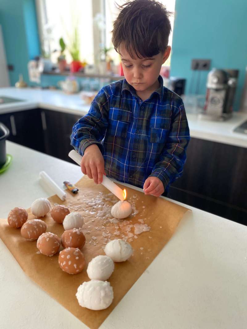 Paaseieren versieren met het kaarsvet