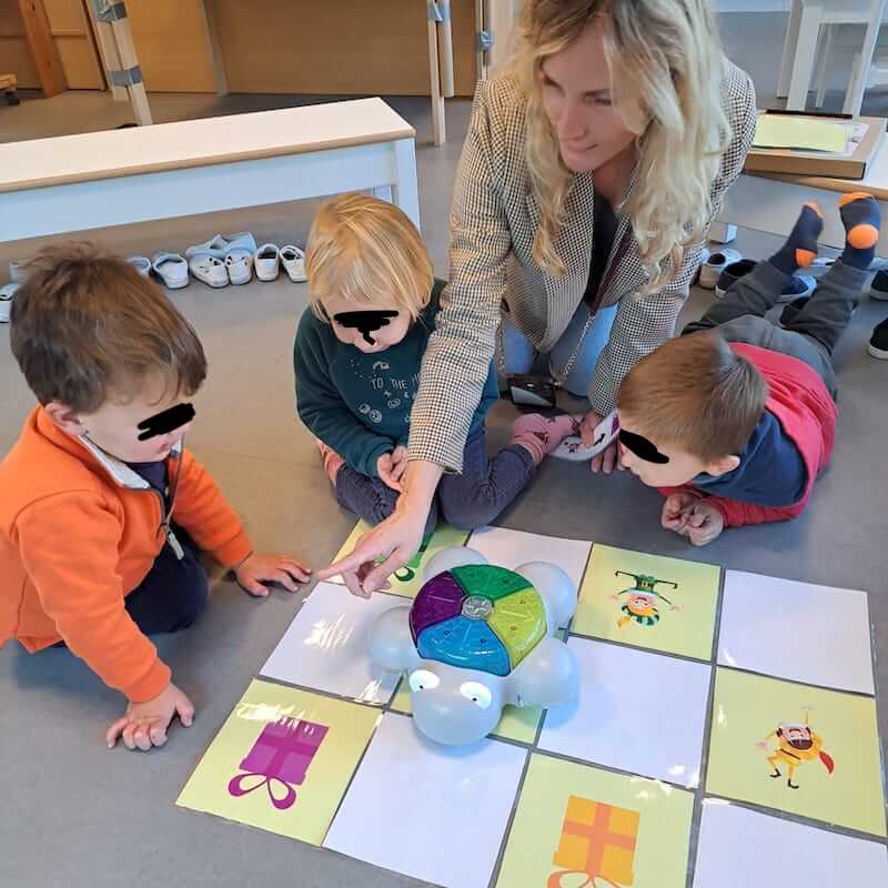 Programmeren met kleuters en peuters is zoveel meer dan enkel de bot laten bewegen. Laat de kinderen een parcours voor de robot bouwen. Ze moeten nadenken over de stappen die hij dan zet en de lengte van zijn stappen. Nadien moeten ze hem nog door het parcours krijgen.
