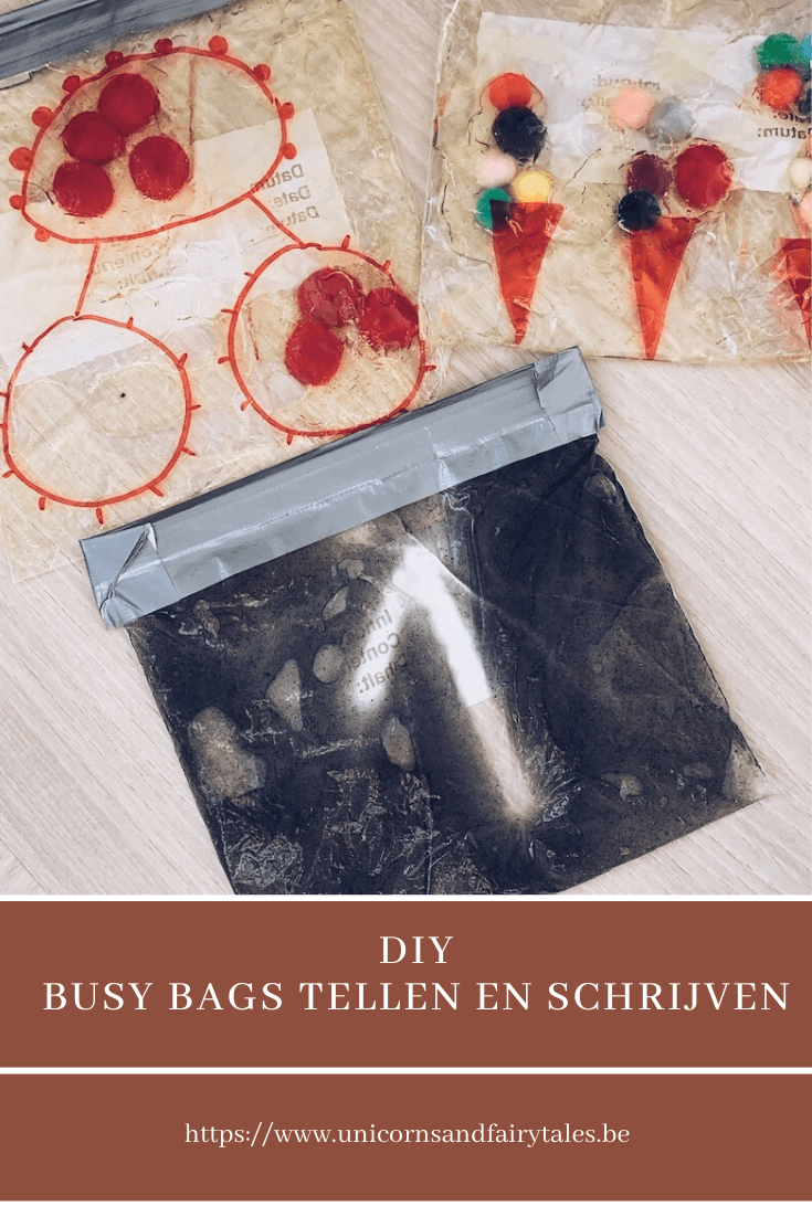 Wij maakten ook enkele sensory bags omdat ik eens wou zien hoe onze kinderen hierop reageerden en omdat Vince cijfers wil schrijven maar vaak nog moeite heeft met enkele cijfers zoals de twee, de acht enz… Om hem op een andere manier te laten oefenen dan voortdurend op een blaadje, maakte ik een sensory bag waar hij naar hartelust kon schrijven. Ook rekent hij graag. Optellen en aftrekken gaat als vanzelf, ook al zit hij nog niet in het eerste leerkaar. Maar splitsingen zonder materiaal is nog moeilijk. Daarom wou ik eens testen of ik een busy bag kon maken voor splitsingen en dat was eigenlijk makkelijk!1. Sensory bag om splitsingen te oefenen
