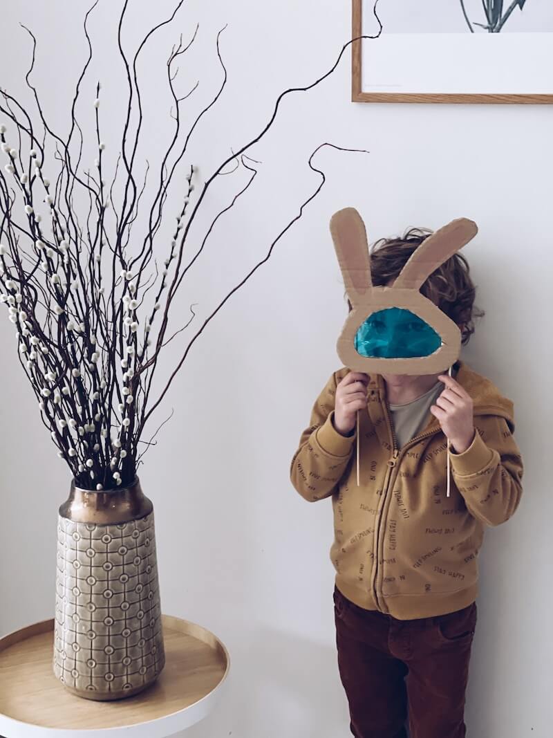 Je kan zelf kleurveranderaars maken door uit karton een silhouetten te snijden en er gekleurd cellofaanpapier tussen te steken. Wij maakten een haas, helemaal in thema Pasen, maar je kan dit natuurlijk in andere thema’s doen. In mijn boek staat een werkbeschrijving om gekleurde vleugels te maken. Je kan dit ook in de zon houden en de gekleurde weerkaatsing op de grond te zien. Supertof!