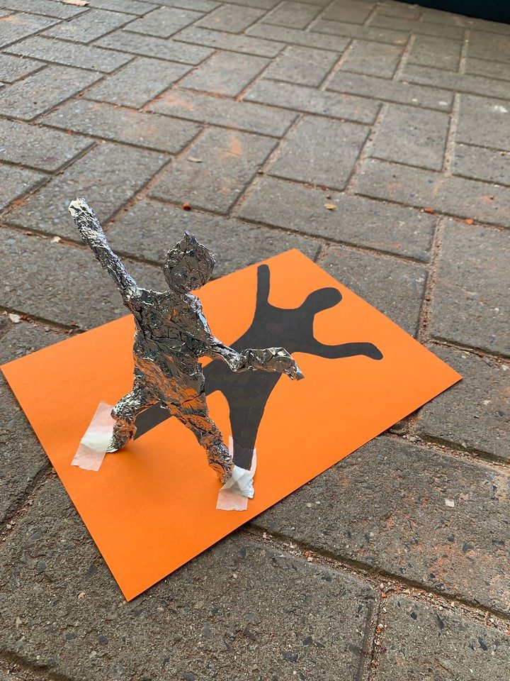 Je kan beeldjes maken met ijzerdraad of aluminiumfolie, ze in de zon zetten en de schaduw overtrekken en zwart kleuren. Zo heb je een mooi kunstwerk! Experimenteer met hoe jij je beeldje zet en hoe groot je de schaduw maakt.