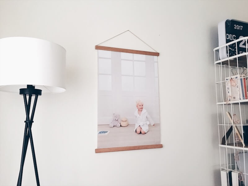 Ik liet van een mooie foto (moeilijke keuze) een textielposter maken. Je weet wel, in de aard van een schoolplaat. Tijdloos, elegant en mooi. Ik ben er superblij mee. Uiteindelijk vult zo’n poster weer een ruimte op. Het is anders dan een gewone foto, de kleuren vervagen niet en het is makkelijk te verplaatsen. Bovendien een mooi cadeautje waar vooral oma’s en opa’s heel blij mee zijn (en mama’s en papa’s).