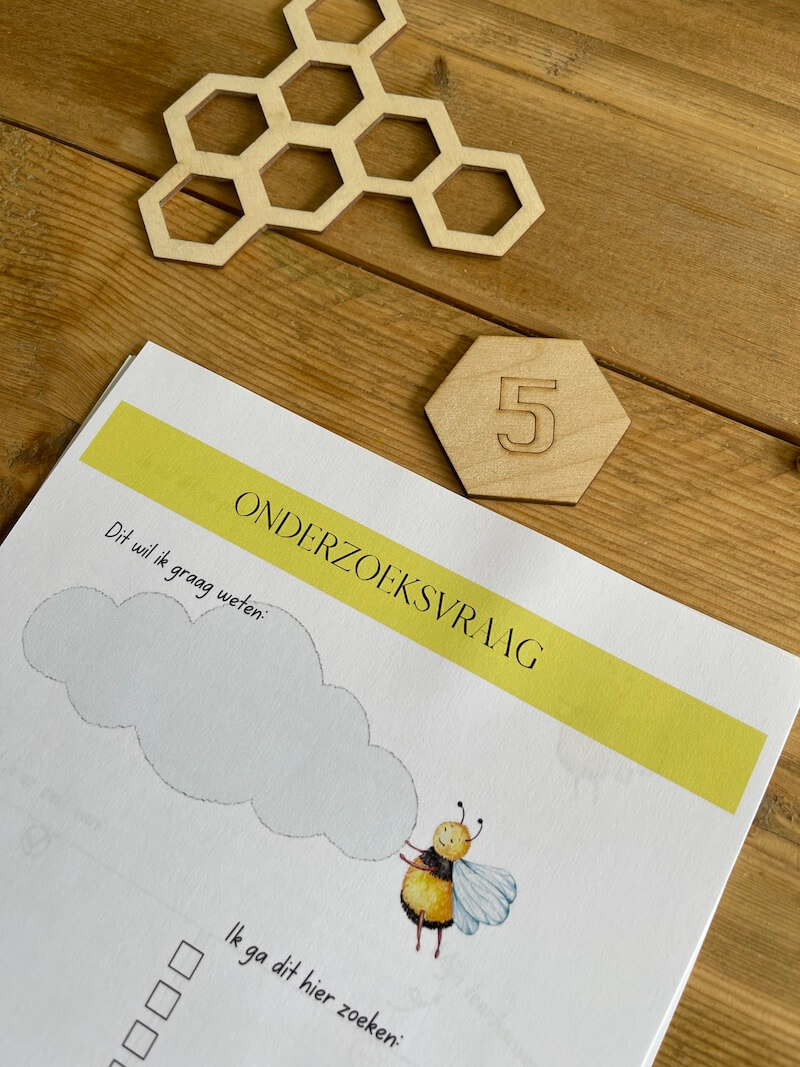 De onderzoeksfiches dagen kinderen dan weer uit om onderzoekend en ontwerpend te leren. Kunnen ze een oplossing bedenken voor een probleem? Kunnen ze een insectenhotel maken? Wat zou er gebeuren als bijen uitsterven enz? Deze printables bieden een steun, maar jouw hulp is zeker nodig.