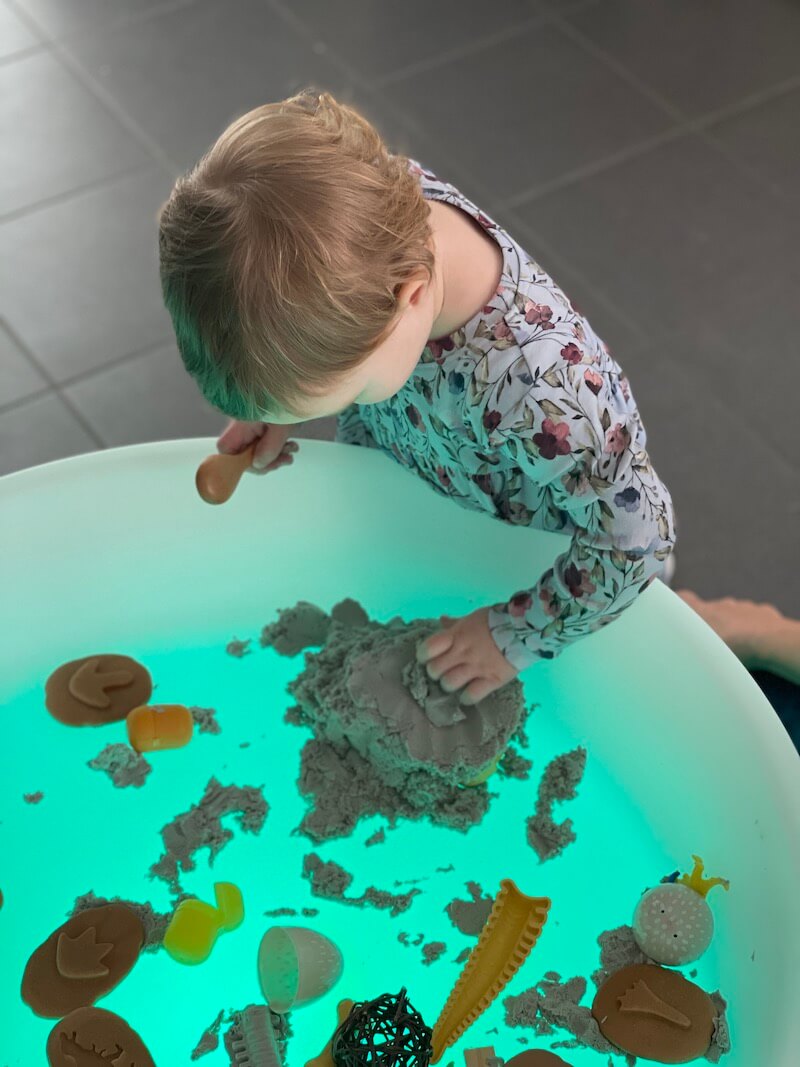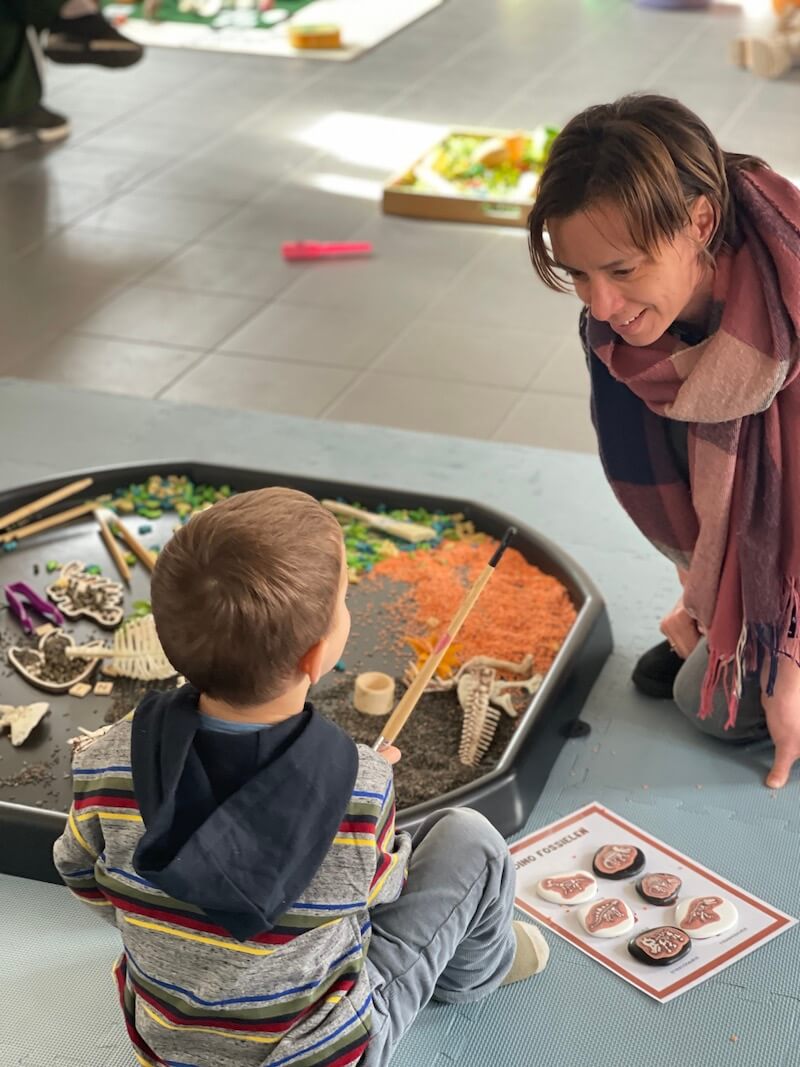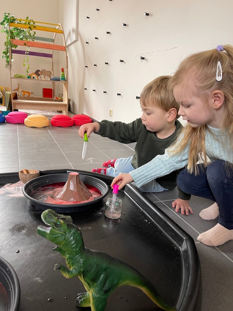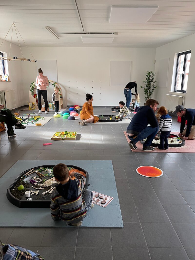 Het thema van deze workshop sensory play zal zijn: ‘ANIMAL PLAY’ in de brede zin van het woord: maak kennis met allerlei soorten dieren, inclusief dino’s! Zowel sensory play als small world play is aan de orde, met een kleine educatieve touch. Sensory play is spelen met je zintuigen. Heel goed voor de verbinding tussen ouder en kind en voor emotieregulatie. De vorige edities waren prachtig. Fantastisch om de kindjes een uur lang geboeid én rustig te zien spelen, met grote oogjes van verbazing, een lach op hun gezicht en tedere ogen van mama’s en papa’s… Je gaat bovendien naar huis met een ton aan inspiratie. Want … je kan dit thuis ook toepassen…